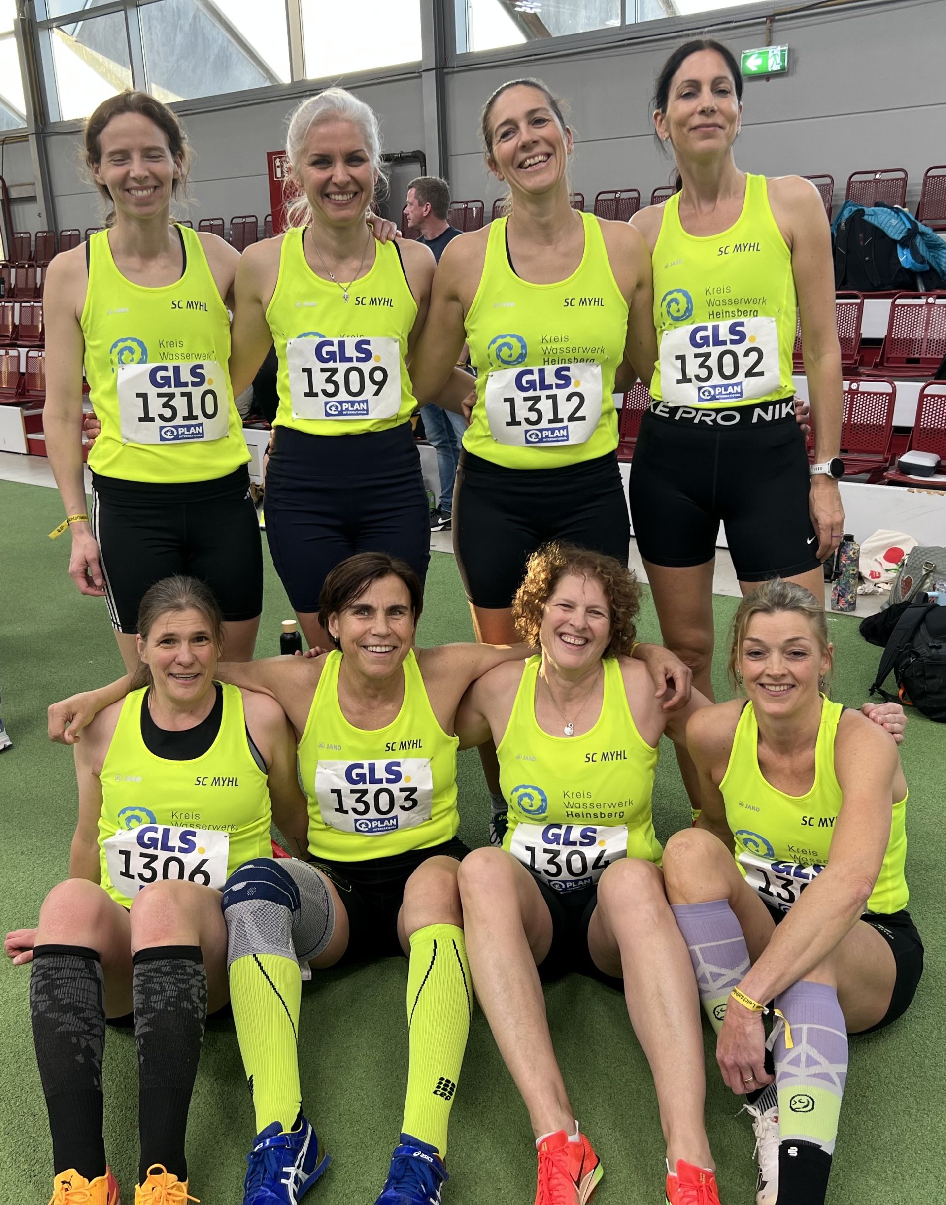 Nun waren die Mädels der W50/55 an der Reihe, und sie liefen in der Besetzung Therese Jäger, Ines Ditters, Anja Deckers und Ira Horstmann. Auch sie liefen "um ihr Leben", denn Therese wechselte als Erste in diesem ersten von zwei Zeitläufen, und Ines übergab knapp als Erste an Anja, die dann diesen Platz erwartungsgemäß nicht verteidigen konnte, aber den zweiten Rang sicherte und an Ira den Stab übergab. Ira kämpfte, wie wir sie noch nie gesehen hatten, um die anderen beiden Staffeln nicht vorbeizulassen. Das schaffte sie auch, und die Uhren blieben bei 2:19,25 min stehen. Auch diese Zeit bedeutete neue Bestleistung und war sieben Zehntel Sekunden besser, als vor zwei Wochen. Diese Leistung bedeutete final Rang vier. Es waren zwei Platzierungen, die man vor den Rennen so nicht erwarten durften.